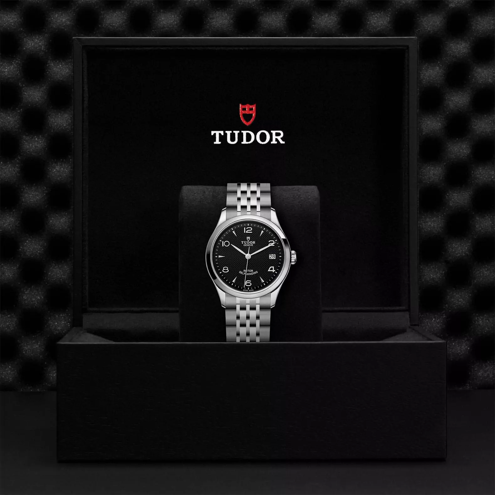 • Mechanische Uhr von Tudor mit Gehäuse und Band aus Edelstahl, 36 mm Durchmesser, Automatikwerk mit 38 Stunden Gangreserve, auf Dichtheit geprüft bis 10 ATM und Datumsanzeige.