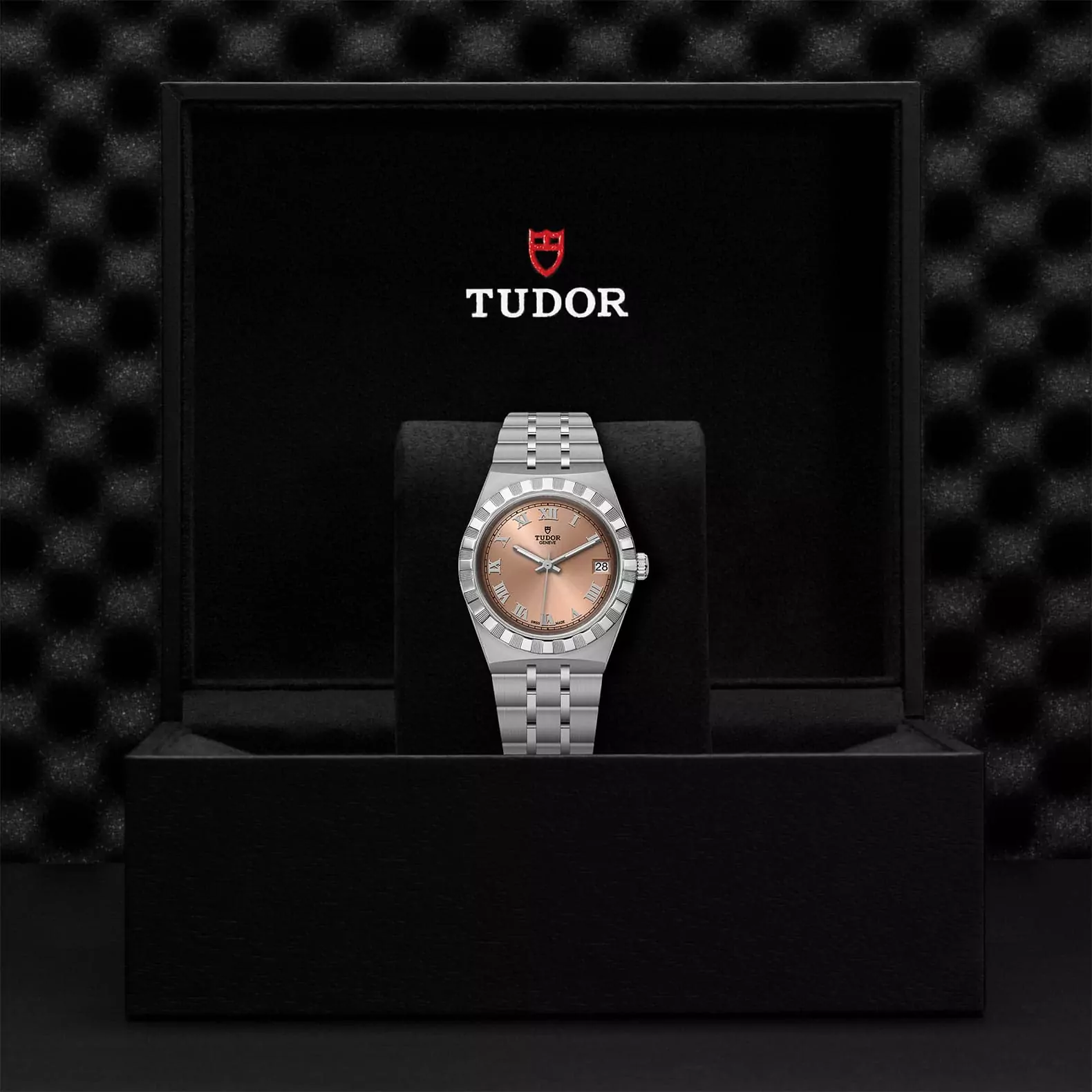 • Mechanische Uhr von Tudor mit Gehäuse und Band aus Edelstahl, 34 mm Durchmesser, Automatikwerk mit 38 Stunden Gangreserve, auf Dichtheit geprüft bis 10 ATM und Datumsanzeige.