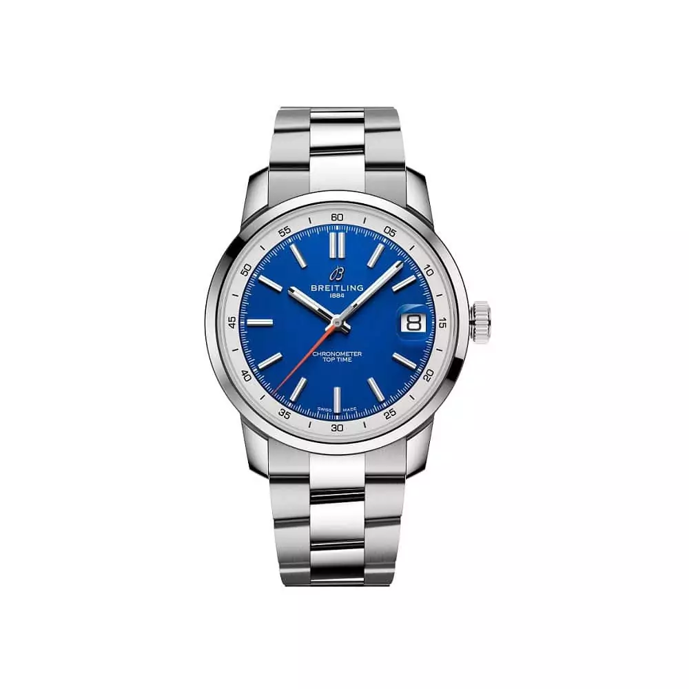 • Mechanische Uhr von Breitling mit Gehäuse und Band aus Edelstahl, 38 mm Durchmesser, COSC-zertifiziertes Breitling Manufakturwerk B31 mit ca. 78 Stunden Gangreserve, auf Dichtheit geprüft bis 10 ATM, Datumsanzeige mit Lupe und Saphirglasboden.