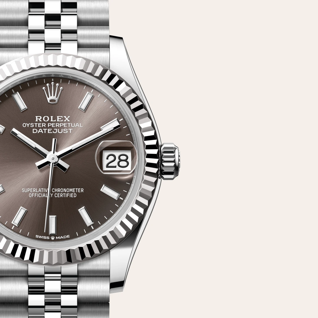Die geriffelte Lünette von Rolex ist ein Markenzeichen. Ursprünglich hatte die Riffelung der Oyster Lünette einen praktischen Zweck: Sie diente zum Verschrauben mit dem Gehäuse­, um die Wasserdichtheit der Armbanduhr zu gewährleisten. Die Riffelung entsprach deshalb der des Gehäuse­bodens, der ebenfalls mithilfe von Rolex Spezial­werkzeugen mit dem Gehäuse verschraubt wurde, um die Uhr wasserdicht zu machen. Mit der Zeit erhielt die Riffelung eine rein ästhetische Funktion und wurde zu einem prägenden Element des stilistischen Markenerbes von Rolex. Heute ist die geriffelte Lünette ein Distinktions­merkmal, das bei dieser Datejust 31 in Gold gefertigt wird.