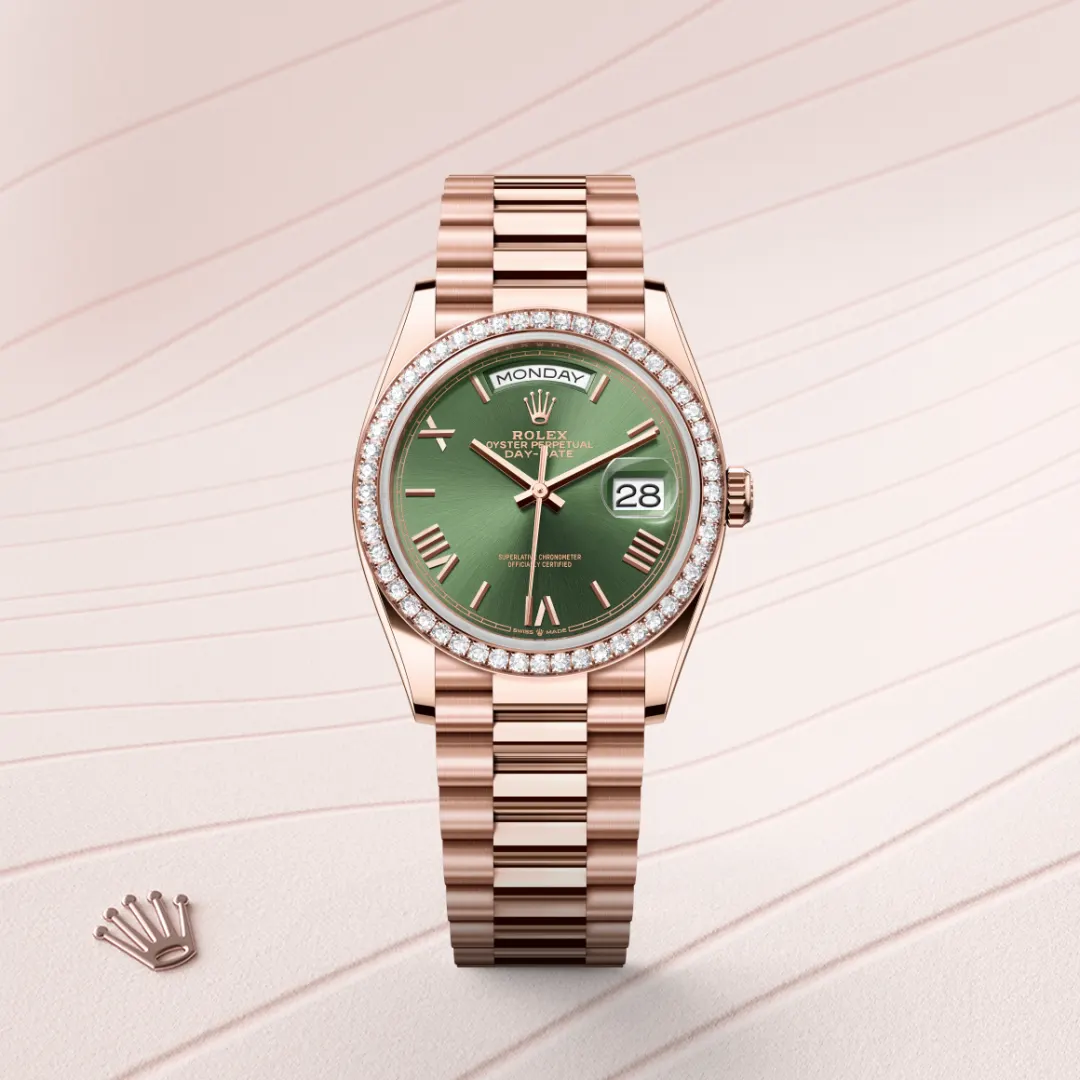 Rolex Day-Date in 18 Karat Everose-Gold mit grünem Siegel