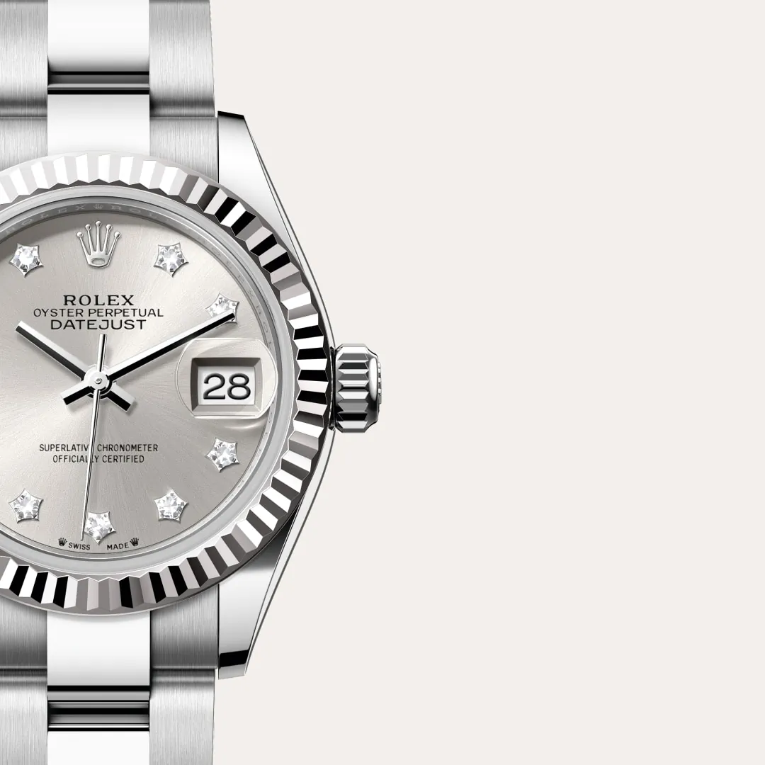 Die geriffelte Lünette von Rolex ist ein Markenzeichen. Ursprünglich hatte die Riffelung der Oyster Lünette einen praktischen Zweck: Sie diente zum Verschrauben mit dem Gehäuse­, um die Wasserdichtheit der Armbanduhr zu gewährleisten. Die Riffelung entsprach deshalb der des Gehäuse­bodens, der ebenfalls mithilfe von Rolex Spezial­werkzeugen mit dem Gehäuse verschraubt wurde, um die Uhr wasserdicht zu machen. Mit der Zeit erhielt die Riffelung eine rein ästhetische Funktion und wurde zu einem prägenden Element des stilistischen Markenerbes von Rolex. Heute ist die geriffelte Lünette ein Distinktions­merkmal, das bei dieser Lady-Datejust in Gold gefertigt wird.