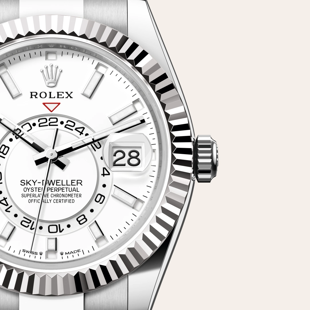Rolex Sky-Dweller in Rolesor weiß (Kombination aus Edelstahl Oystersteel und Weißgold), Detailansicht