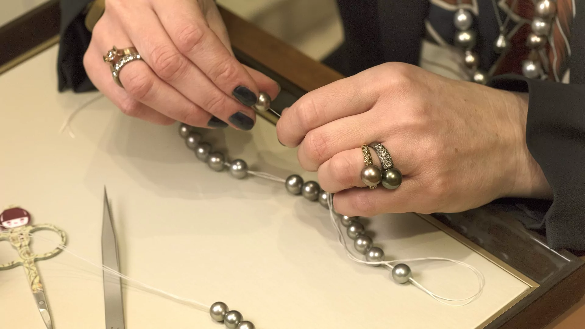 Qualitativ hochwertige Perlen erkennen Sie immer auch daran, dass sie fachmännisch geknotet sind. Die Experten von S.M.WILD wählen die perfekte Perlenseide für Ihr Collier und knoten mit höchster Handwerkskunst Ihren Perlenschatz.